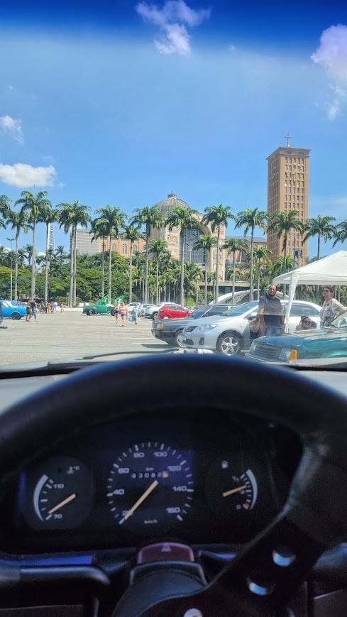Assistida à missa e consumida mais uma unidade cavalar de café, era hora de deixar o calor colossal, entrar no Gol e voltar para o Rio. O calor só piorava, e a vontade de chegar em casa era cada vez mais forte. Sem tempo a perder, deixamos a basílica e nos pusemos na estrada, rumo a mais um abastecimento.