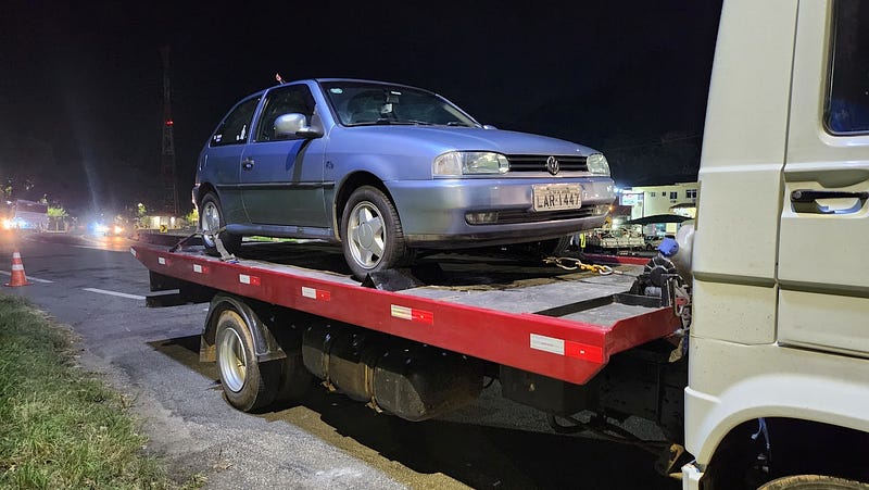 Me despedi dos amigos que comigo ficaram, subi no guincho e fui lutando contra o sono até chegar em casa. Guincheiro pago, amigo entregue, era hora de arrastar o Gol garagem acima, rebocado pelo Monza, carro que ele mesmo rebocara, dois anos antes, também por conta da elétrica. Entre o soltar dos sapatos, o banho e o raiar do dia seguinte, várias horas passaram em segundos.
