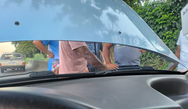 Cerca de 150 km depois, já na Guanabara, as placas indicando a Casa do Mamão se amontoavam, e me faziam flertar com a ideia de comer alguma coisa, mas isso não aconteceria nem se eu quisesse. Faltando 200 metros para chegar nesse ponto, numa descida, a 90 km/h, o carro apaga mais uma vez.