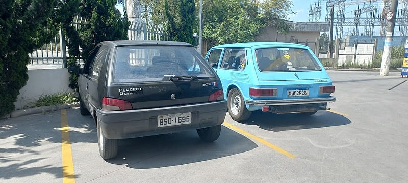 No sinal de trânsito quilômetros depois, alinhados os carros, dava pra ver o quão em casa o Gian estava com o 106. Um carro minúsculo, inadequado, com vários pormenores a fazer e resolver, mas que parecia feito sob medida para seu dono. Se faltava alguma emoção naquela conexão, certamente eles iriam buscar isso juntos.