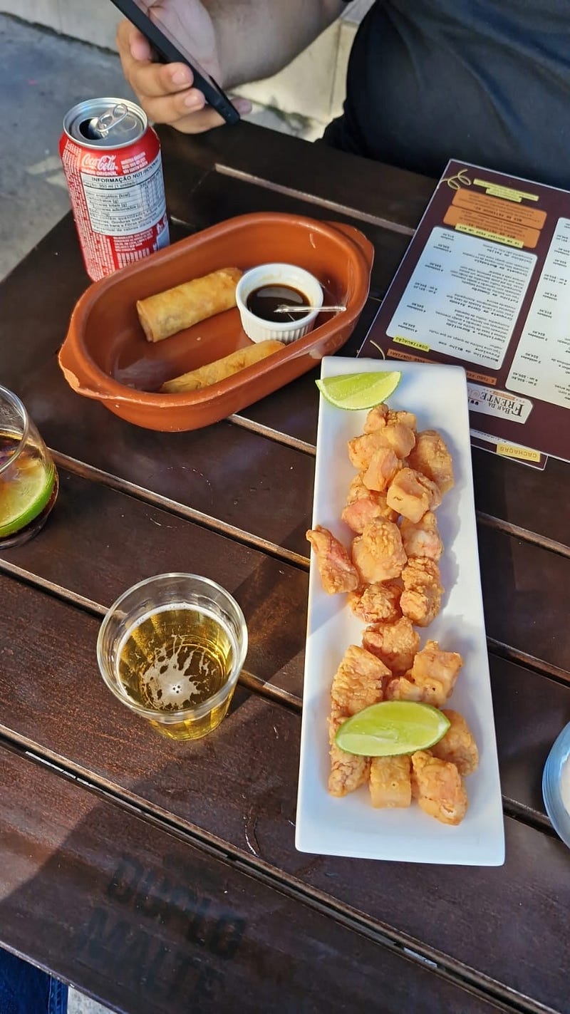 Amores, família, amigos, trabalho, tudo vira assunto. A grande surpresa viria no Bar da Frente, na Praça da Bandeira. Dos muitos temas, um deles foi interrompido por duas iguarias: um Gurjão de Bacon (panceta empanada em massa fininha) e o Porquinho de Quimono (um harumaki de costelinha e requeijão de ervas).