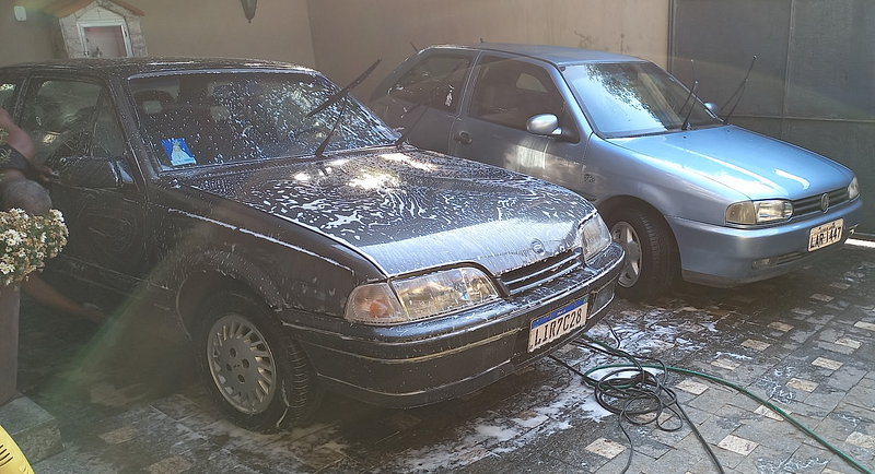 De um lado, meu primeiro carro. Um Gol 95, que se não fosse pelo ar-condicionado adaptado e pelo motor “mais possante” frente ao AE1000 original (agora 1200), não teria muitos atrativos para justificar conforto ao dirigir. Do outro, o catamarã da GM, que além de 2.0 e do ar, tem trio elétrico e direção hidráulica, algo pra lá de favorável na hora de lidar com o trânsito e no entrar e sair da vaga na foto acima. Para piorar, o ajuste de suspensão tem anos de distância do Gol em níveis de conforto, que é mais voltado para a firmeza do que para o manejar de uma lancha esportiva.
