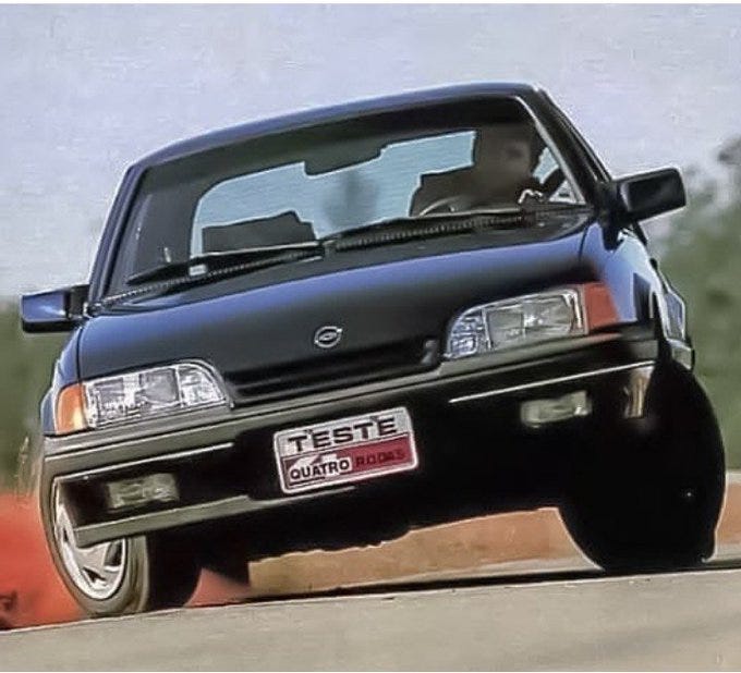 A forma como o Gol entra nas curvas é fantástica, o que prova que é um chassis muito evoluído frente ao GM, cujo projeto vem dos anos 80. Tente fazer o mesmo no Monza e você vai ter que segurar no volante, no teto, na alma do engenheiro que fez o carro ou seja lá no que mais. Voltado estritamente pro conforto, é até um pecado querer inspirações esportivas de um sedan médio de 30 anos atrás, mas o importante é saber os limites do carro, sempre. Pelo menos foi (e é) divertido.